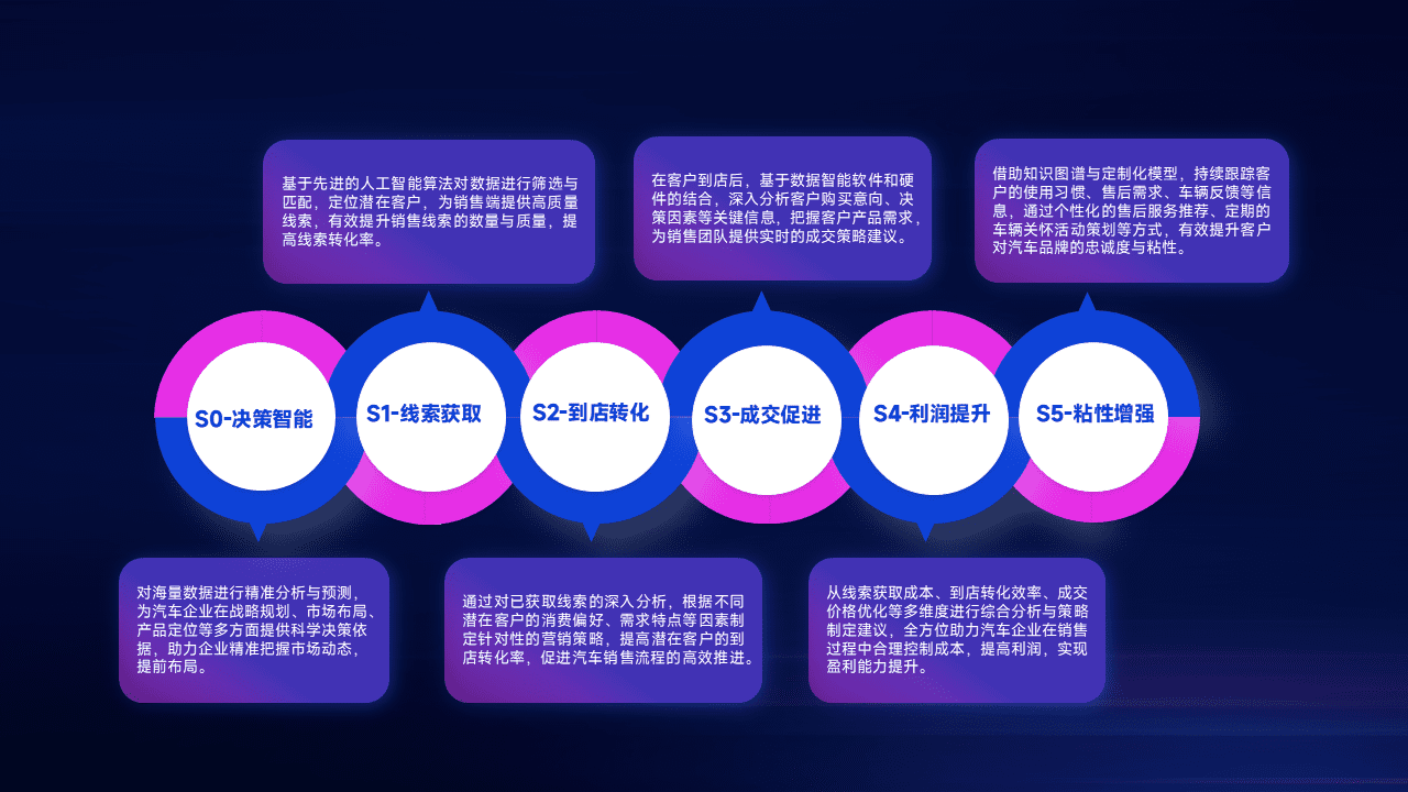 通过拓宽潜在客户来源、、优化线索分配并提高到店转化率,,以增强销售效率。。同时,,,,利用线索数据不断优化分析模型,,,有效提升转化率,,,扩大营销影响力。。。。